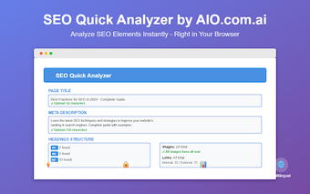 SEO Quick Analyzer By AIO.com.ai는 'Add-ons & Tools' 범주에 속하는 Chrome용 무료 소프트웨어 입니다.SEO Quick Analyzer By AIO.com.ai 에 대한